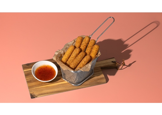 Mērce pēc izvēles: kečups, čili mērce, ļoti pikantā majonēzes mērce, BBQ mērce. (Informācija par alergēniem: zivis un jūras veltes, laktoze, soja, glutēns, olas, krāsvielas)