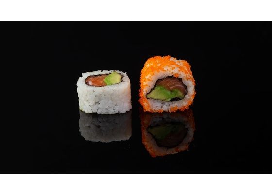 Lasis, avokado, masago, rīsi, nori