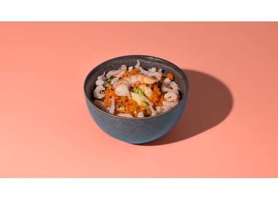 Tiģergarneles, garneles, avokado, mosago ikri, gurķis, rīsi, wasabi, ingvers. Komplektā: 1 sojas mērce un 1 irbulīši (Informācija par alergēniem: zivis un jūras veltes, laktoze, soja, olas, krāsvielas)
